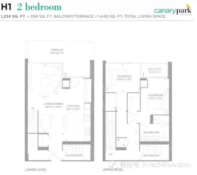 2期townhouse户型和价格 – 697,900 ,1234/sqft + 206 Balcony