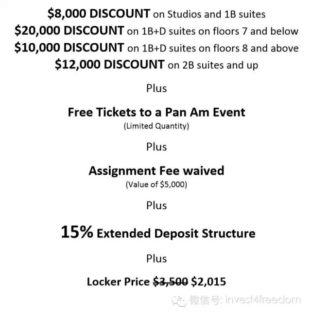 4月25日VIP内部发售一天, 有Condo, Loft、Townhouse 等各种户型。本周末Canary Park 开始泛美运动会之前的VIP内部销售,有高达$20,000元价格优惠,外加其他愈万元无数优惠。本周六还有幸运抽奖泛美运动会开幕式门票,包厢座位!