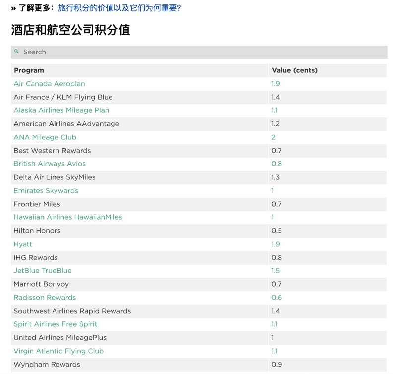 由于可转让信用卡积分比标准旅行奖励更复杂且价值范围更广,因此我们为每个计划或卡提供两个不同的价值: