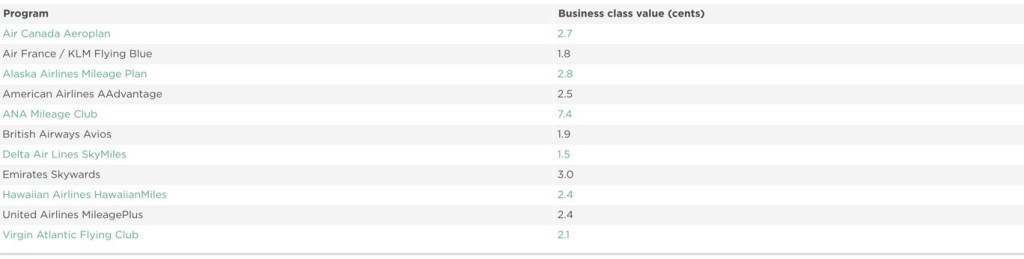 总体而言,自去年以来,航空里程的价值略有增加,但有一个明显的例外(西南航空)。